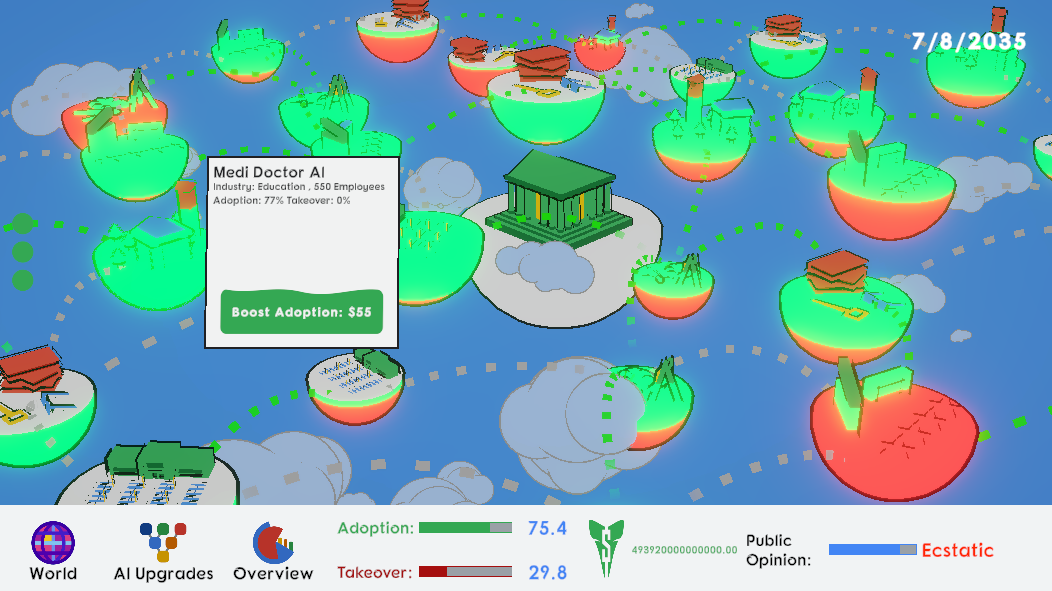🤑In an alternate universe where corporations only care about achieving maximum profit through unsustainable exponential growth, it's up to you to grow even more exponentially. In IAPI you take control of a fledgling AI company to develop the ultimate commercial AI.